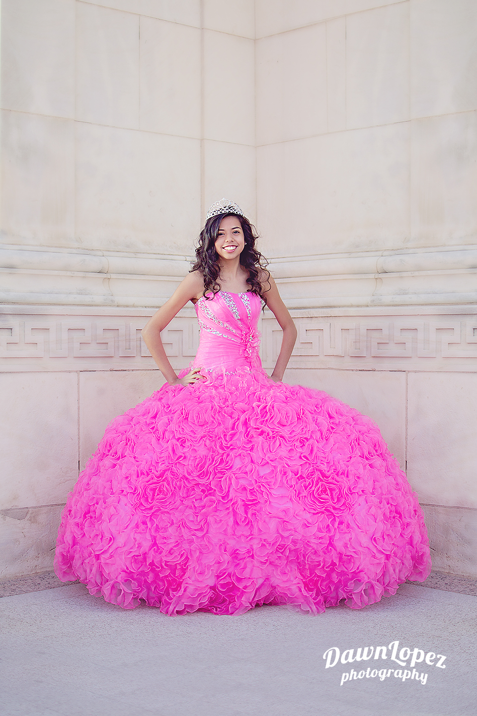 The sun was shining, but the wind was biting cold and it felt much colder than 44 degrees. Miss [E] rocked out her Quince dress photo shoot with a little help of some Hello Kitty fuzzy pajama pants and Mom and Dad blocking the wind and close by with a warm blanket. She was so beautiful in her pretty dress! I knew she was going to shine at her Quinceanera!